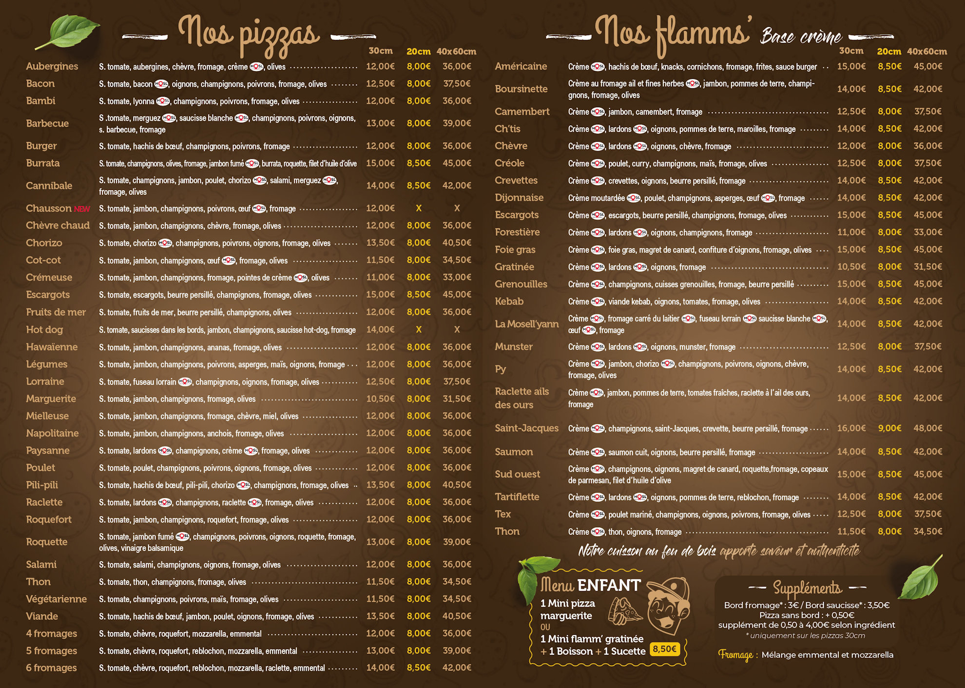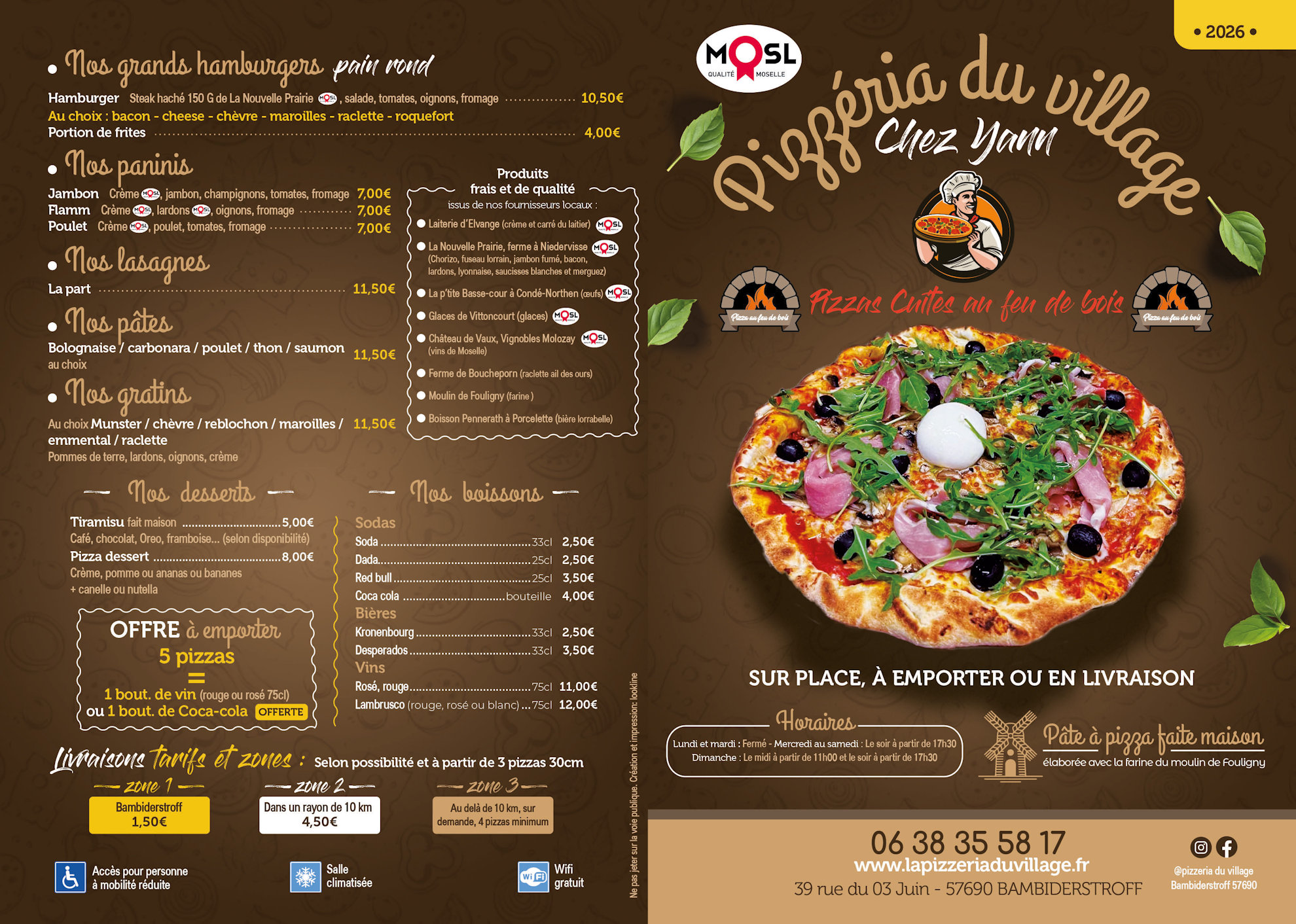 Toute l'équipe vous accueille dans une ambiance chaleureuse pour vous préparer les meilleures Pizzas, les meilleures Flamms, mais aussi les Hamburgers, les Paninis, les Lasagnes, les Gratins.